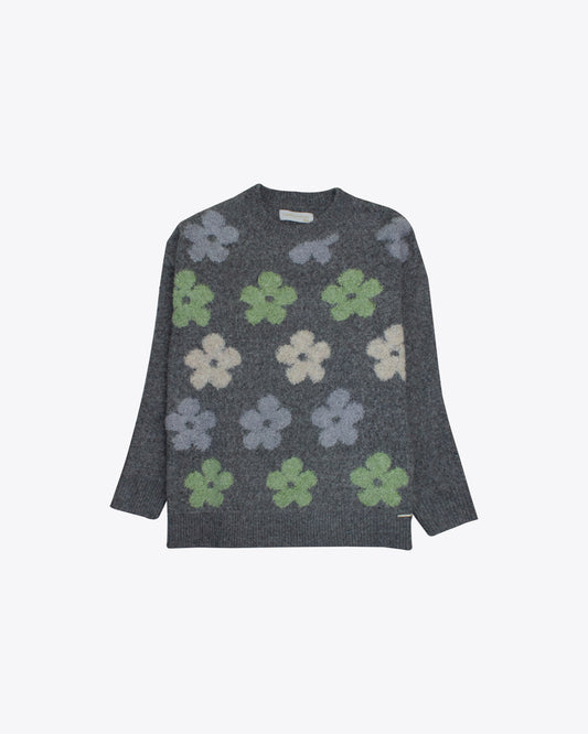 Sweater Tejido Gray Flowers