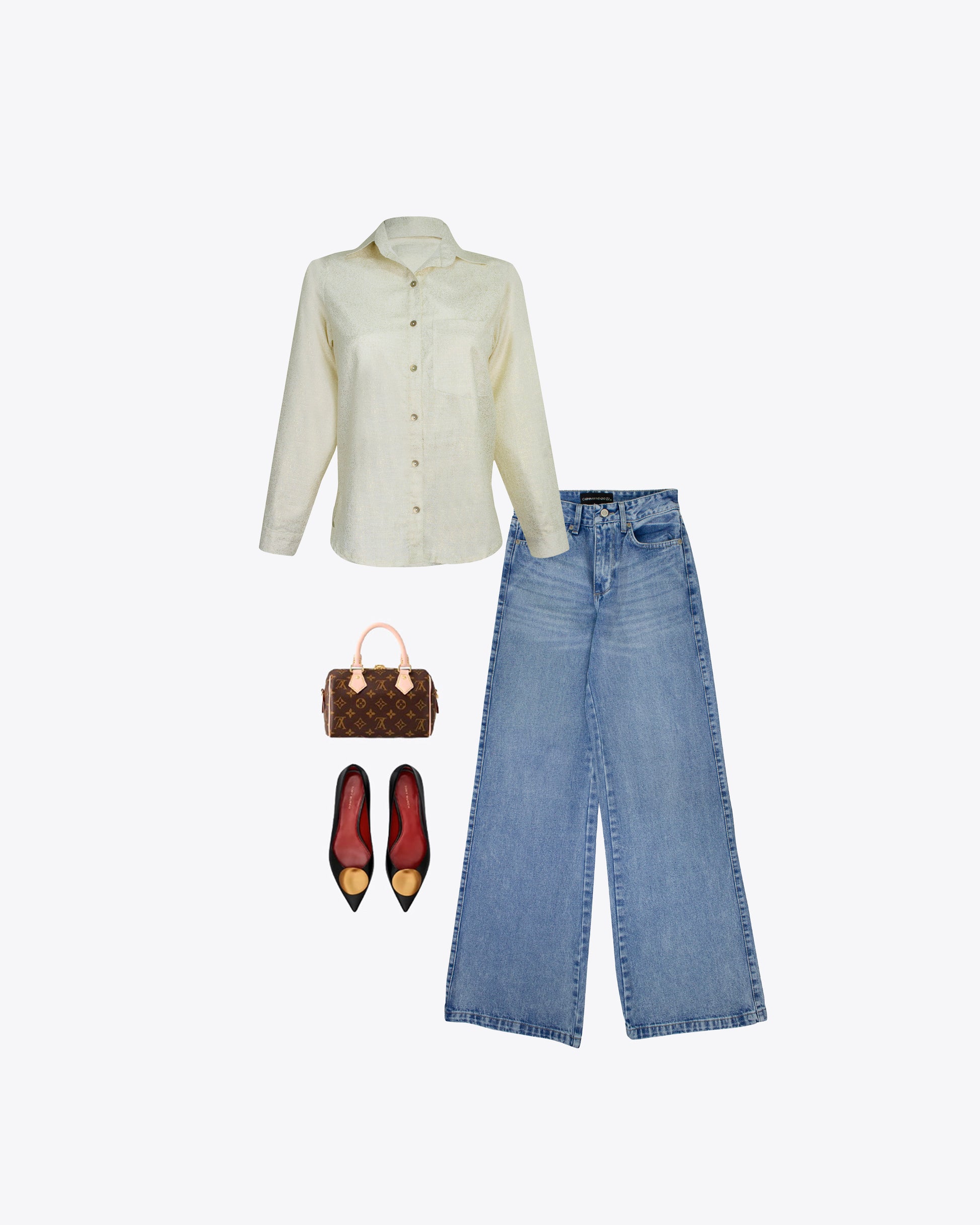 Camisa Slim Cream details gold