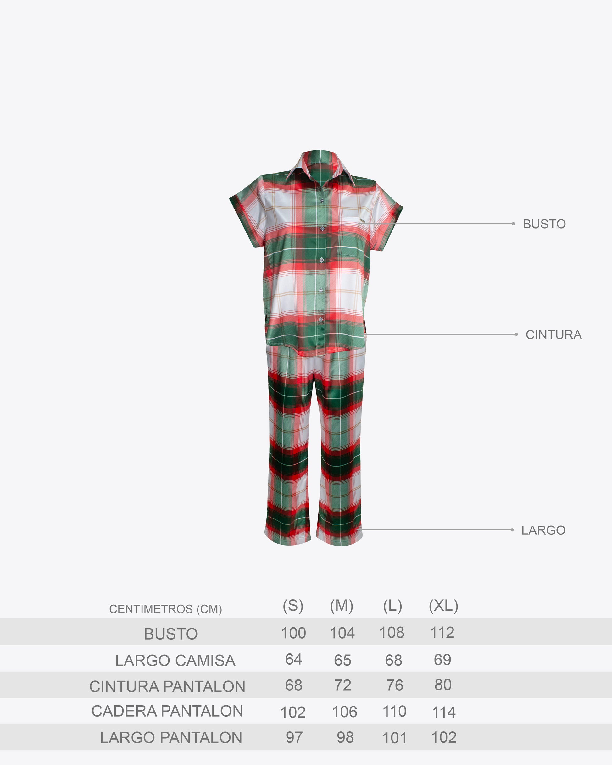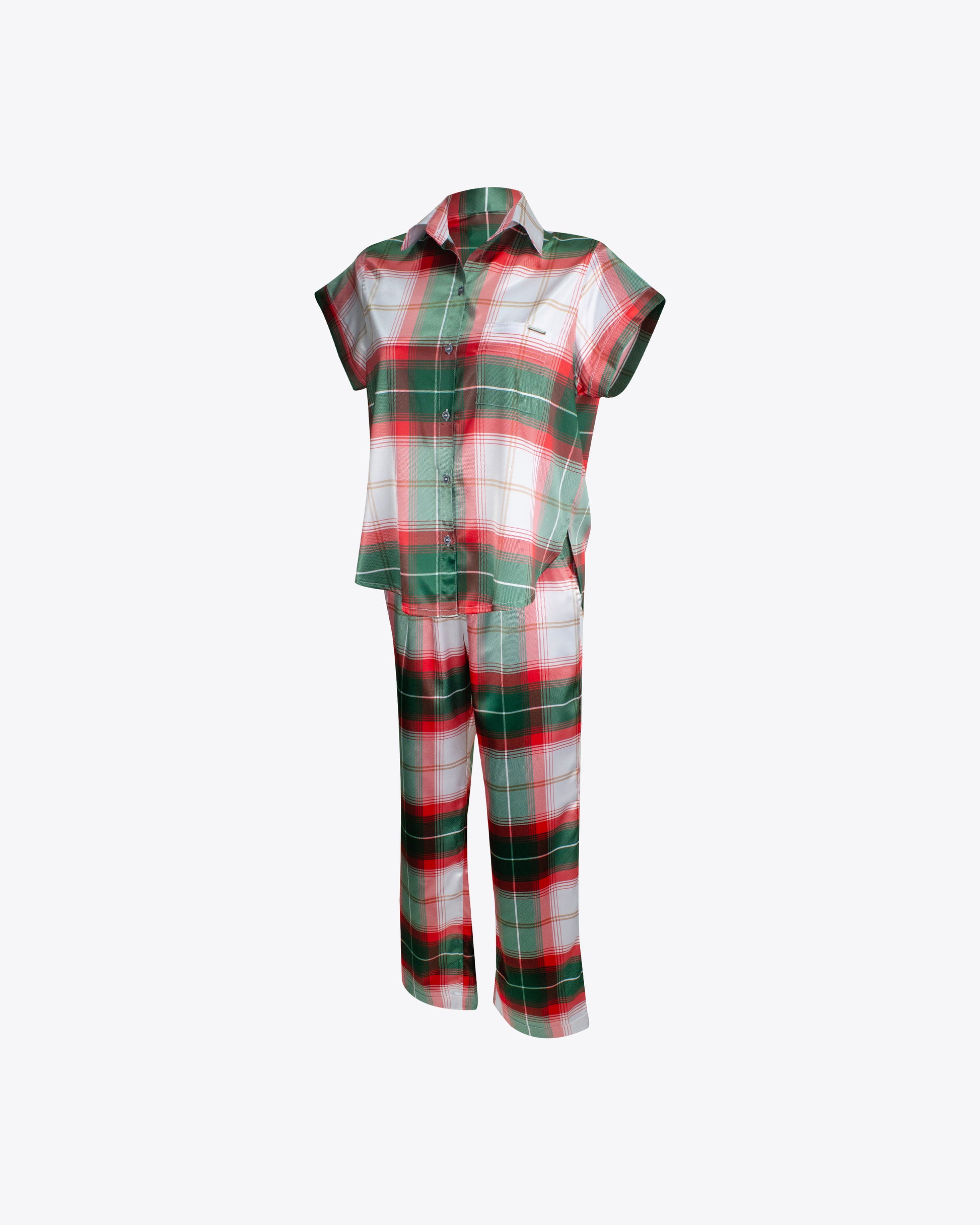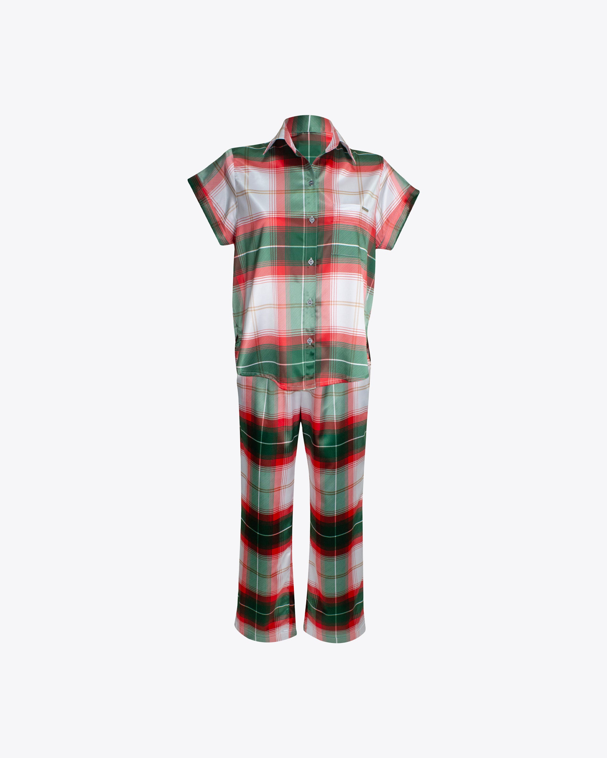 Pijama Camiseria M/C cuadros verdes
