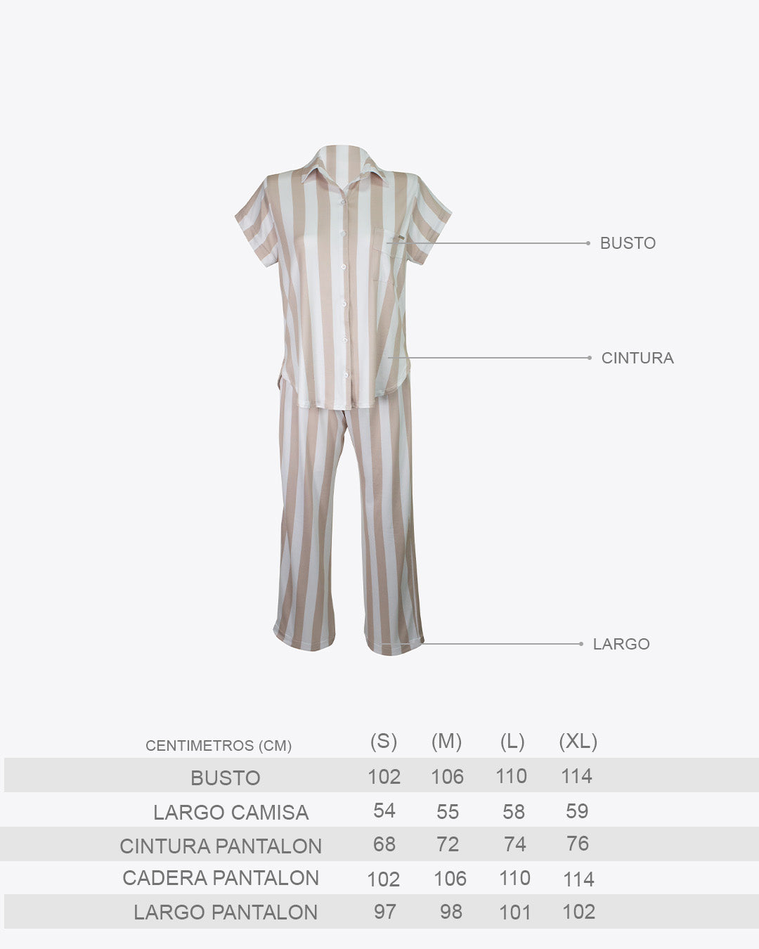 Pijama camiseria M/C rayas Nude