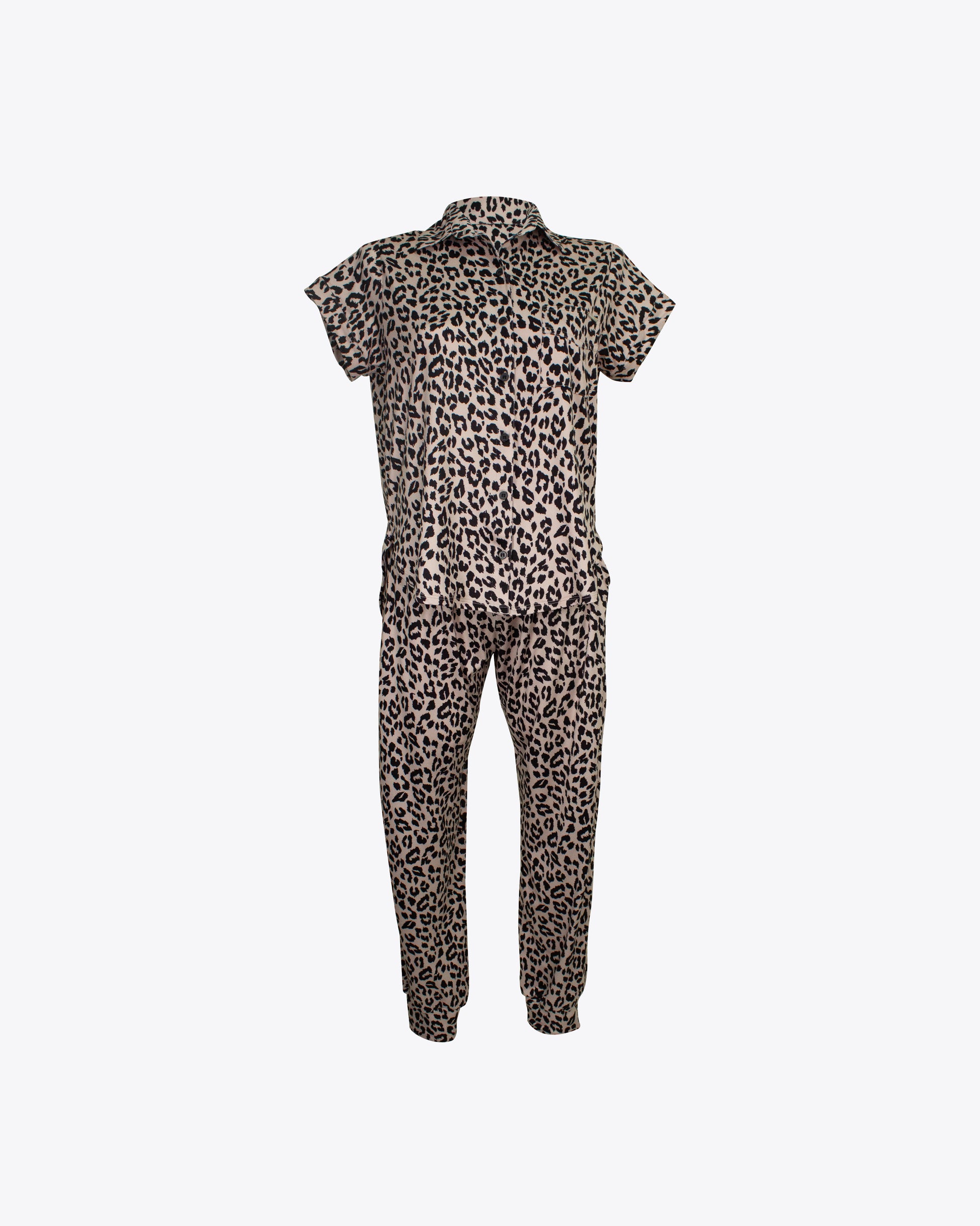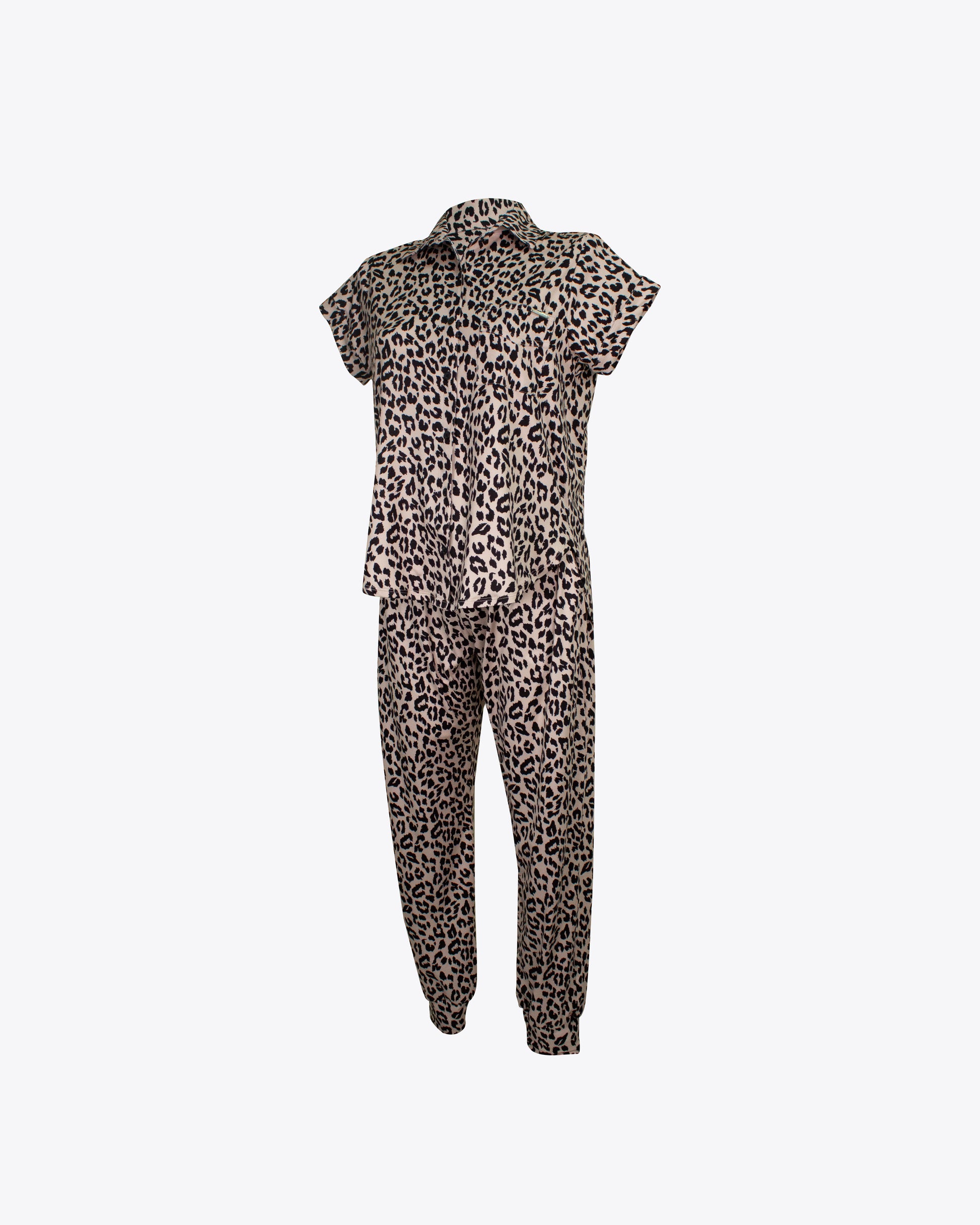 Pijama camiseria M/C y jogger Vainilla leopard