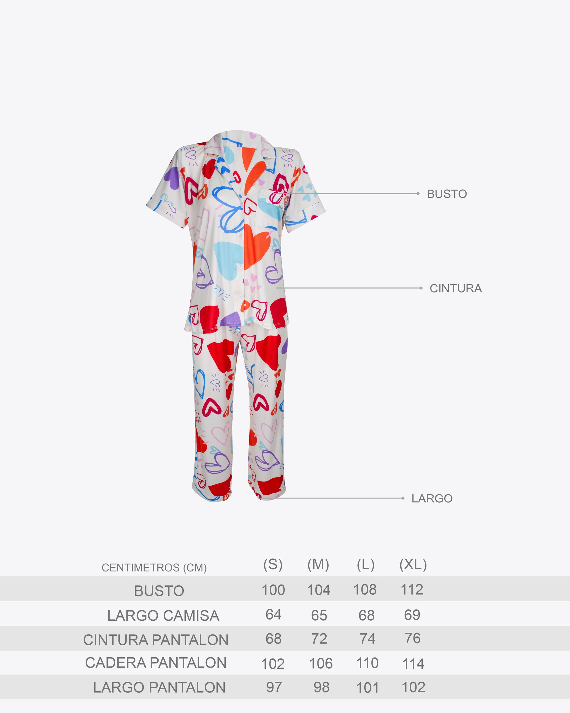Pijama cuello chaquetero hearts Colors algodón