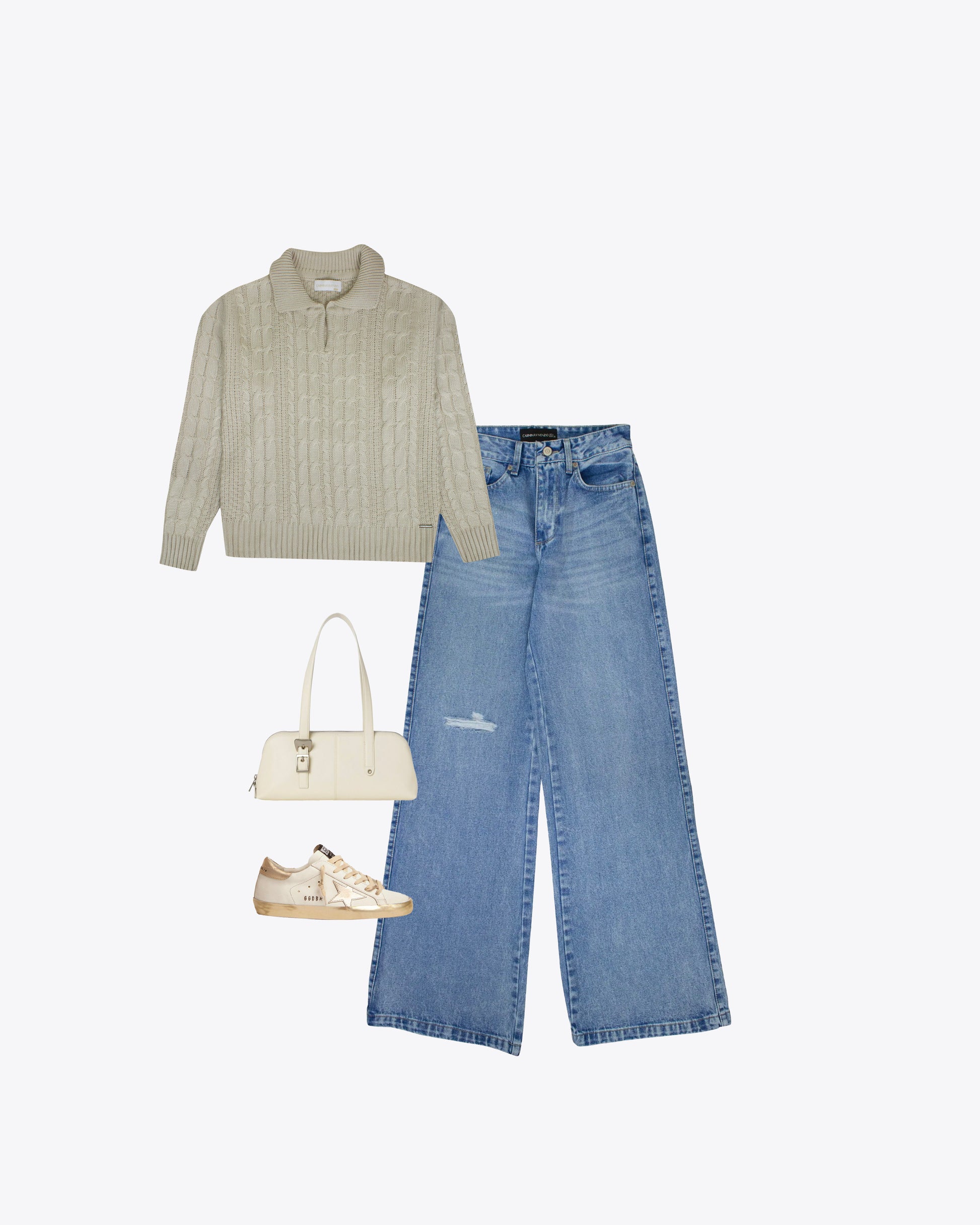 Sweater Polo Trenzado Nude